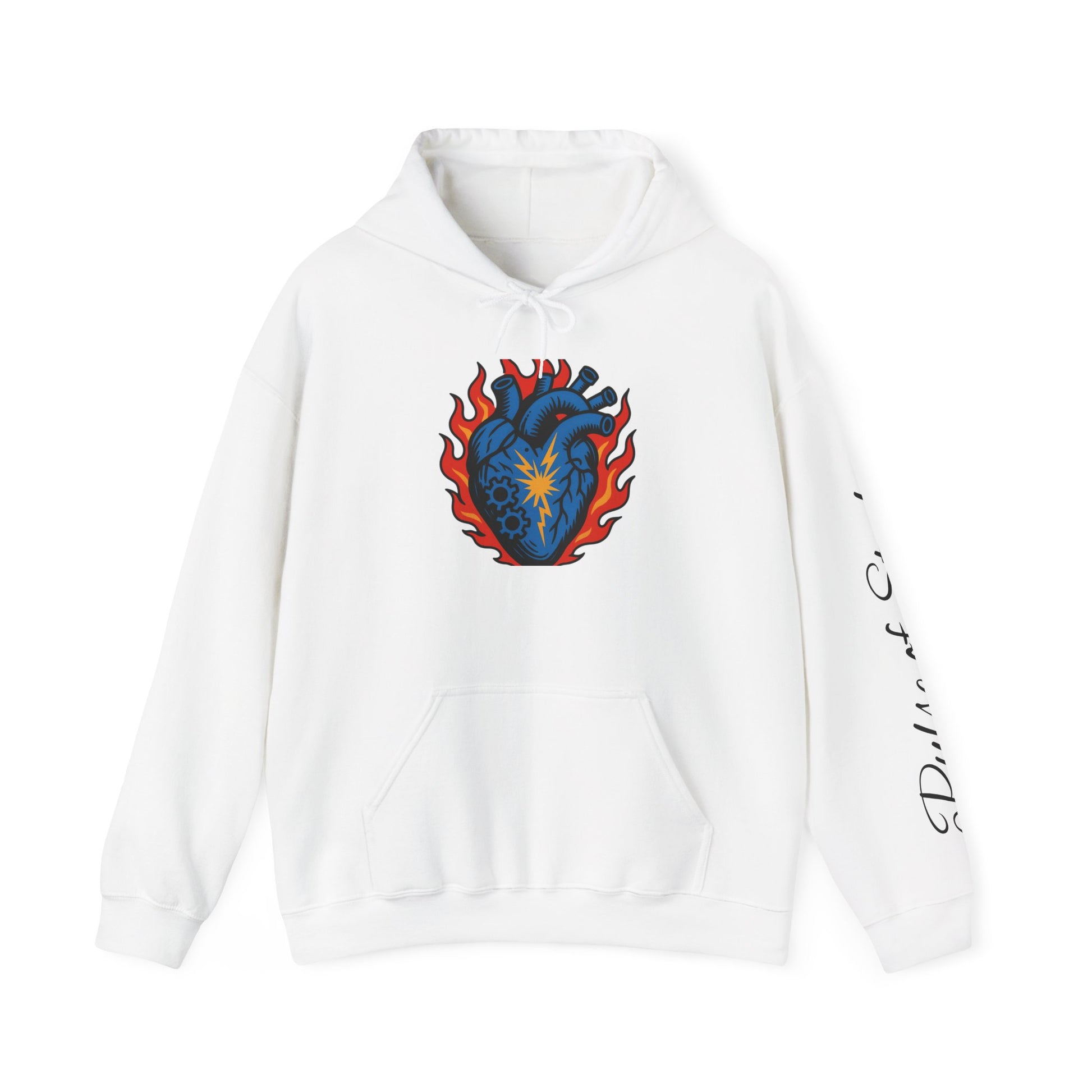 Glory Nature Hoodie — Vintage Script Back with Flaming Heart Graphic (Pulse of Steel)