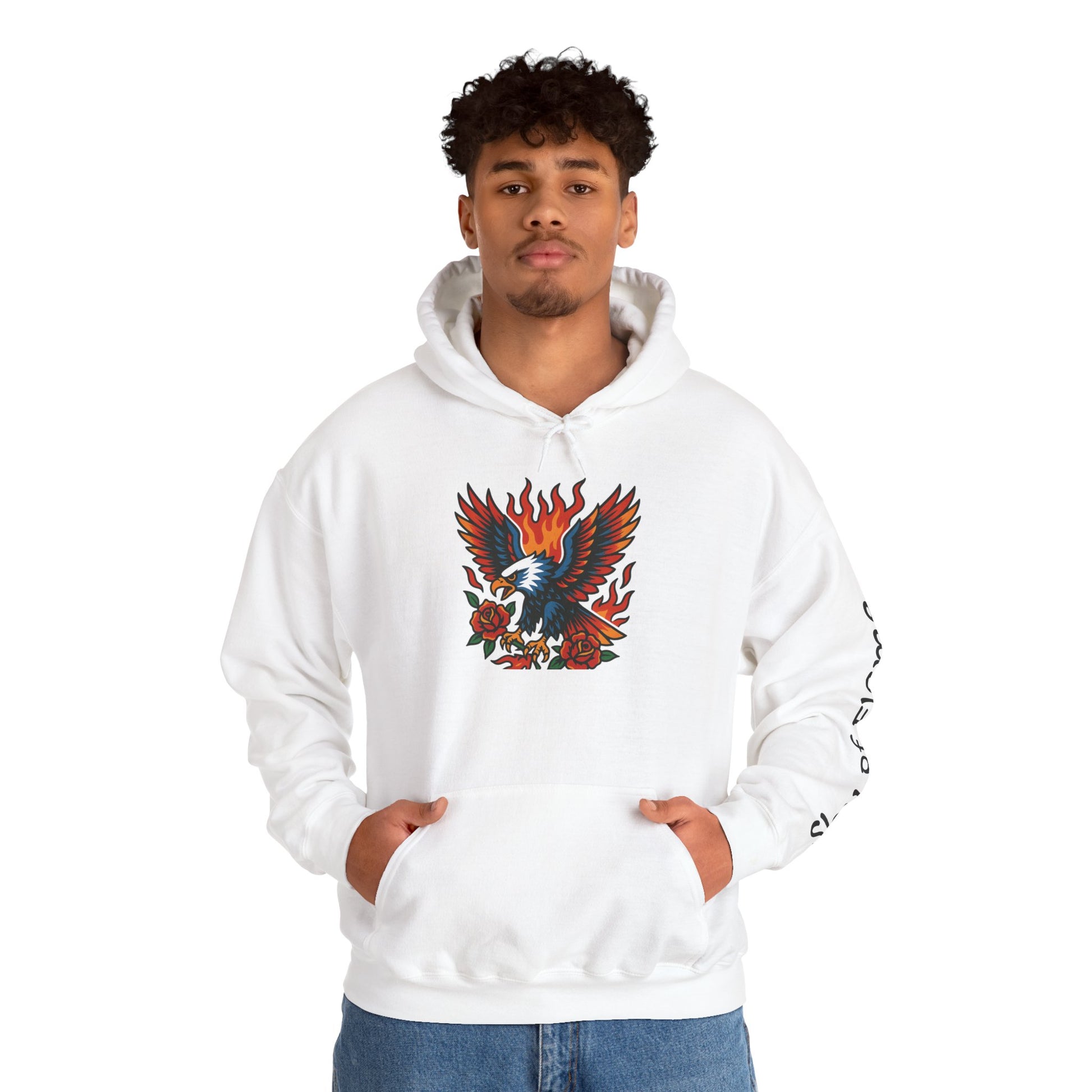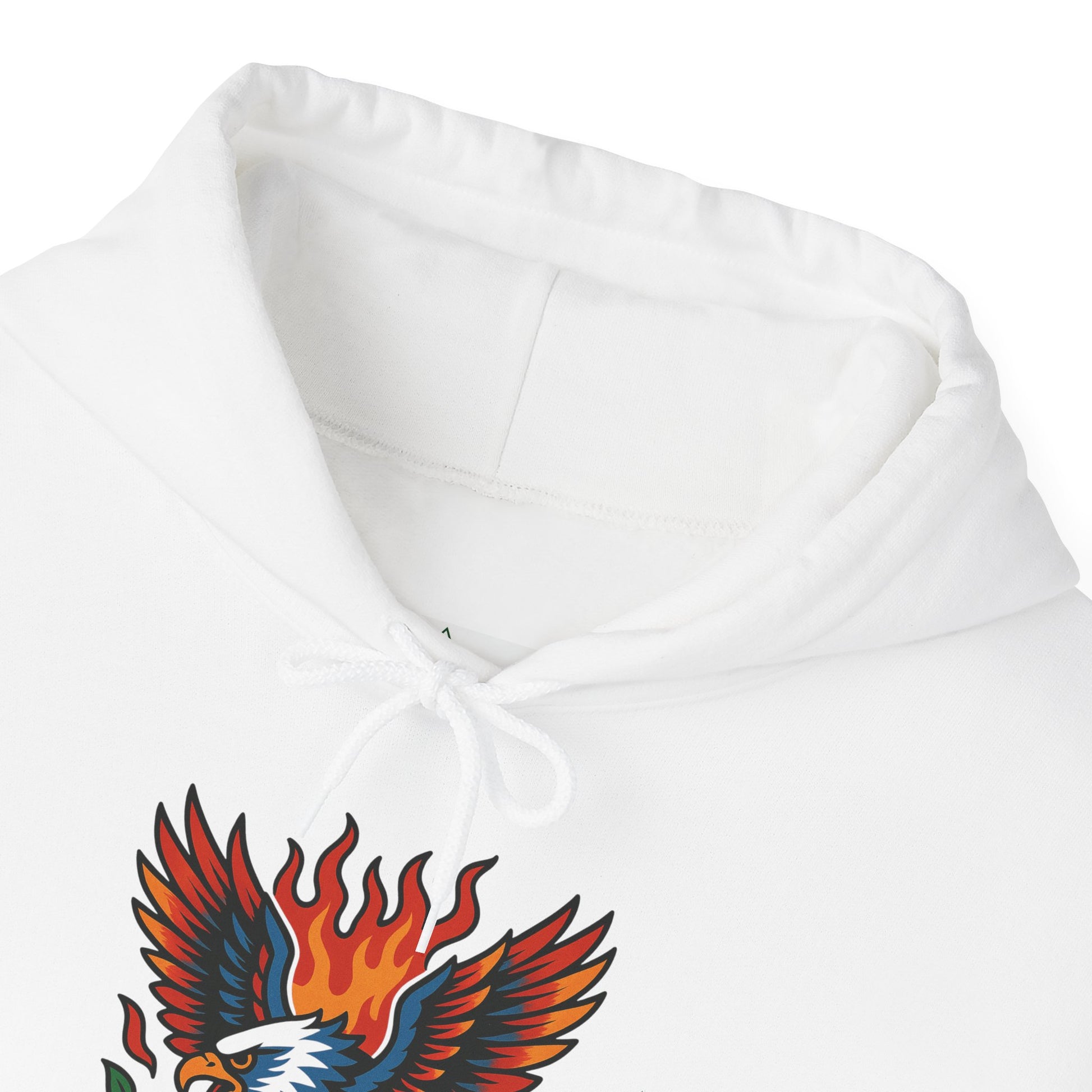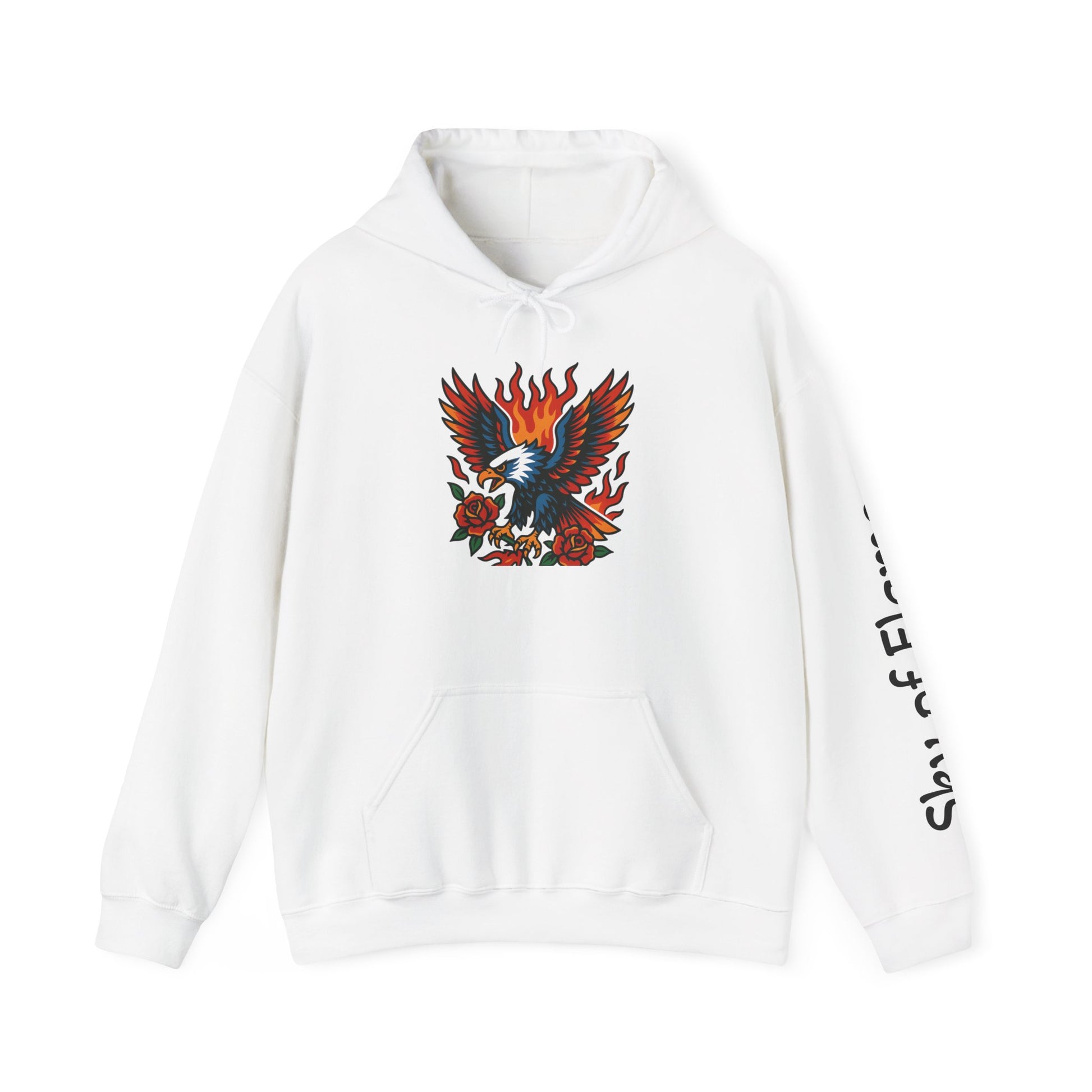 Hoodie - 'Glory Nature, Sky of Flame' Eagle Flame Graphic Hooded Sweatshirt